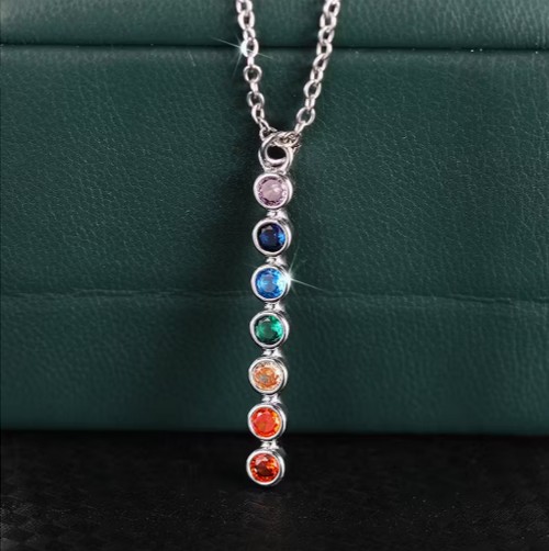 Elegantní linie barevných kamenů proudí jako živý pramen energie, spojující všechna tvá energetická centra do harmonického celku. Tento přívěsek pomáhá aktivovat a vyvážit všech sedm čaker a podporuje volné proudění energie. Napomáhá plynulému toku životní síly, duchovnímu rozvoji a pocitu celistvosti.